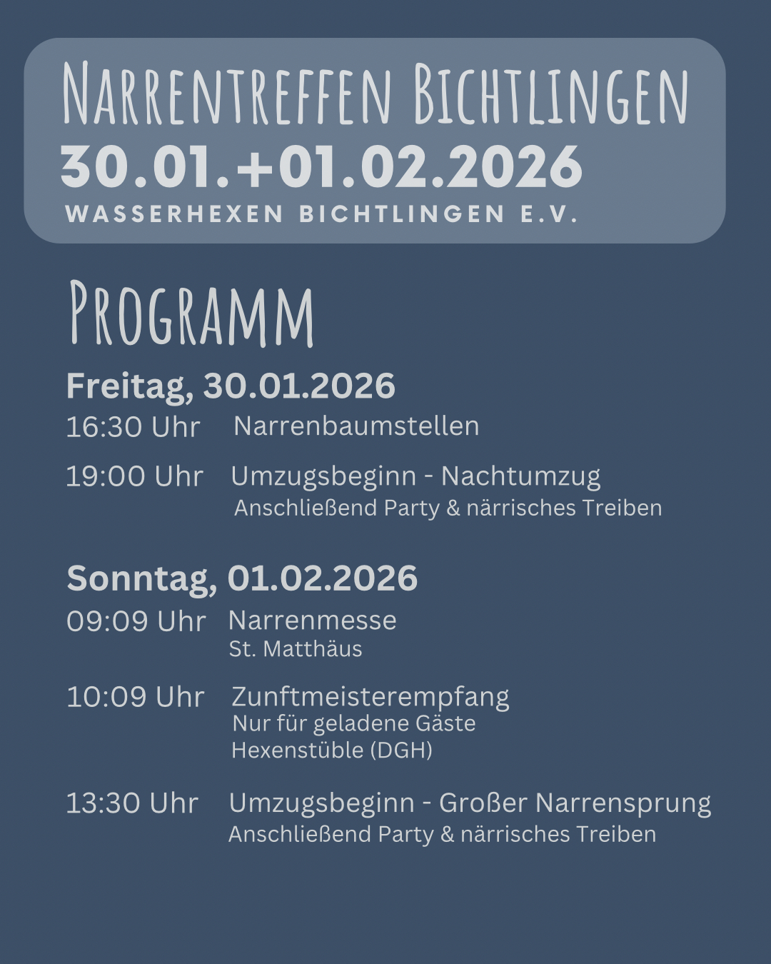 Die Wasserhexen Bichtlingen e.V laden recht herzlich zum ersten Narrentreffen in Bichtlingen ein.
