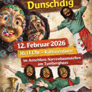 Am Morgen um 09.11uhr fängt es an mit dem ersten Kindergartensturm bis hin zum Narrenbaumstellen am Tuniberghaus ab 16.33uhr, siehe unser Plakat anbei.