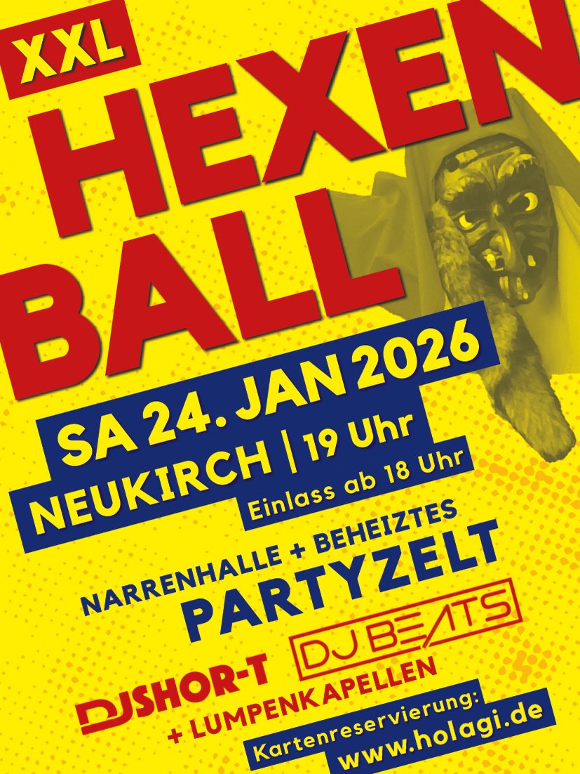 Freut euch auf den XXL Hexenball in Neukirch mit musikalischer Unterhaltung durch Lumpenkapellen und den DJ`s Short-T und Beats.